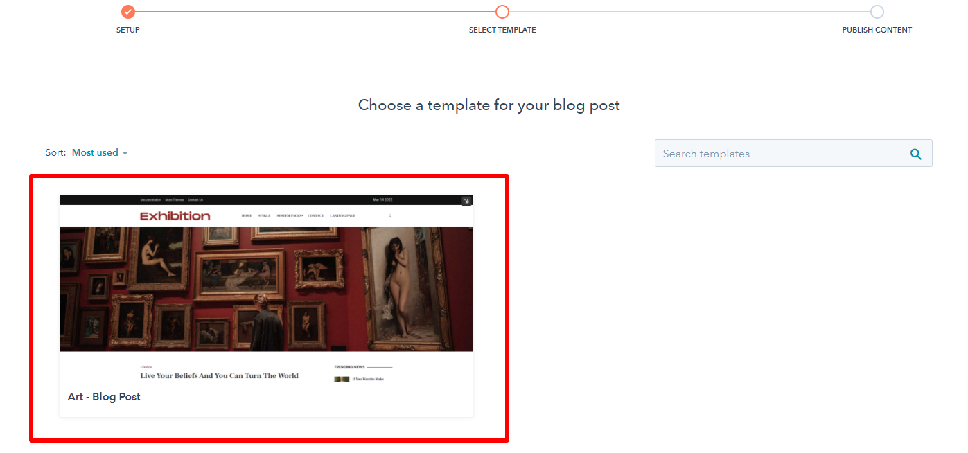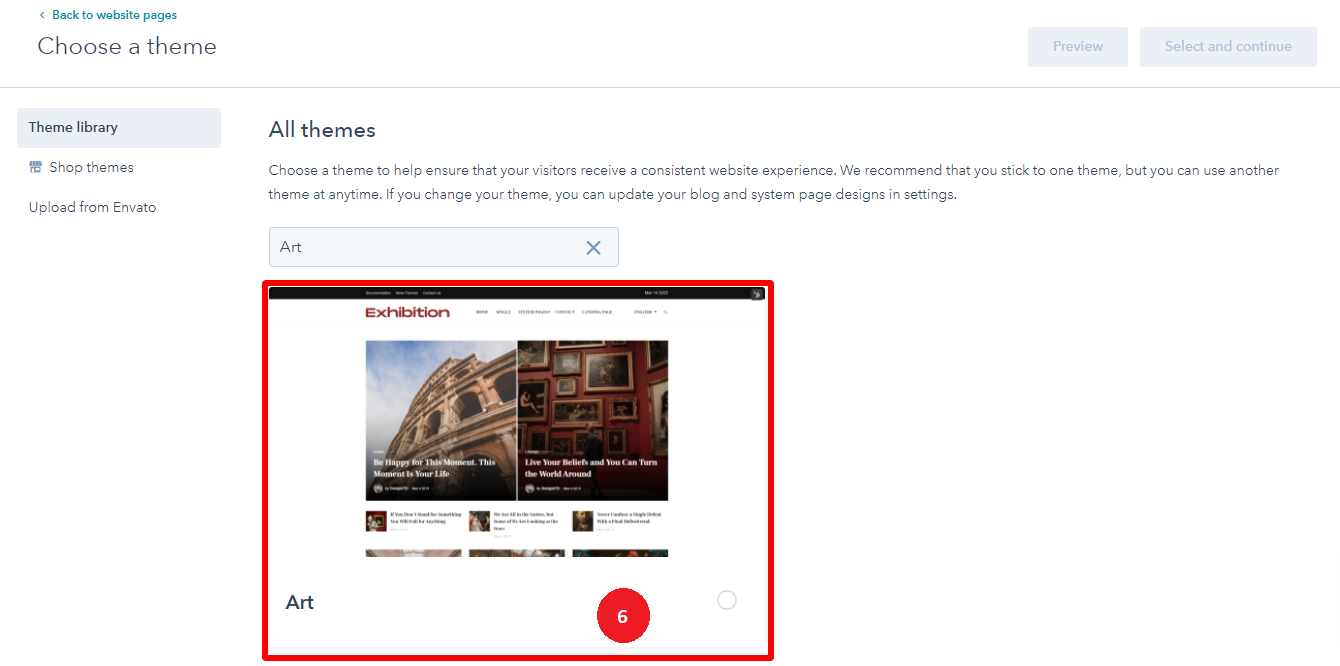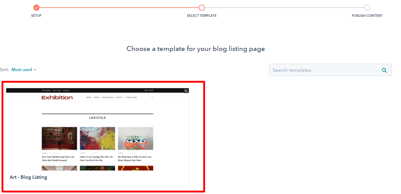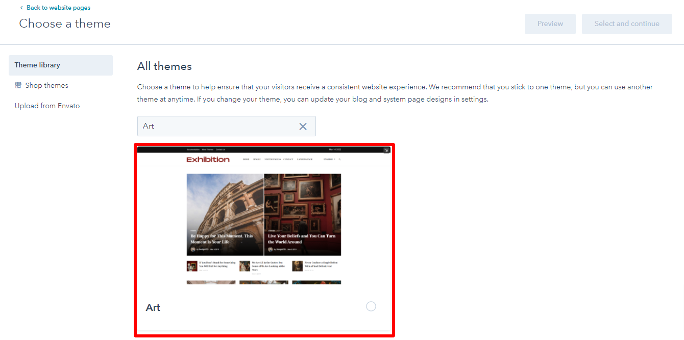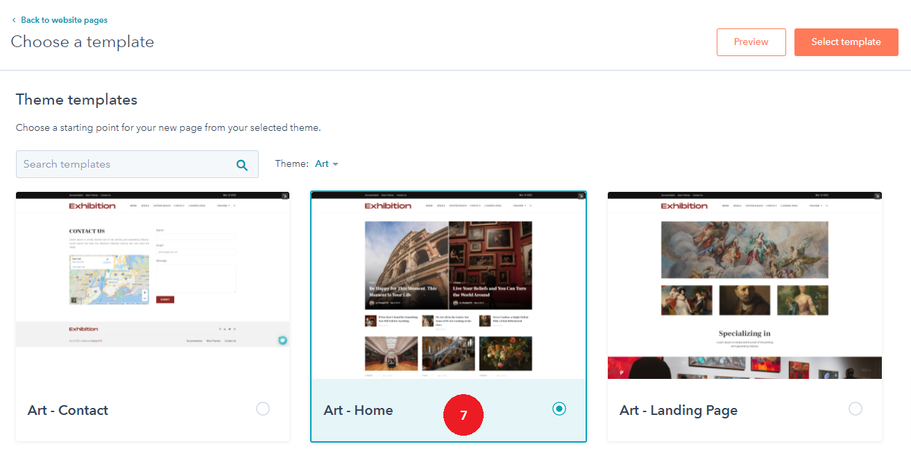 - Choose a template from your newly uploaded theme by selecting the CMS Theme Art.