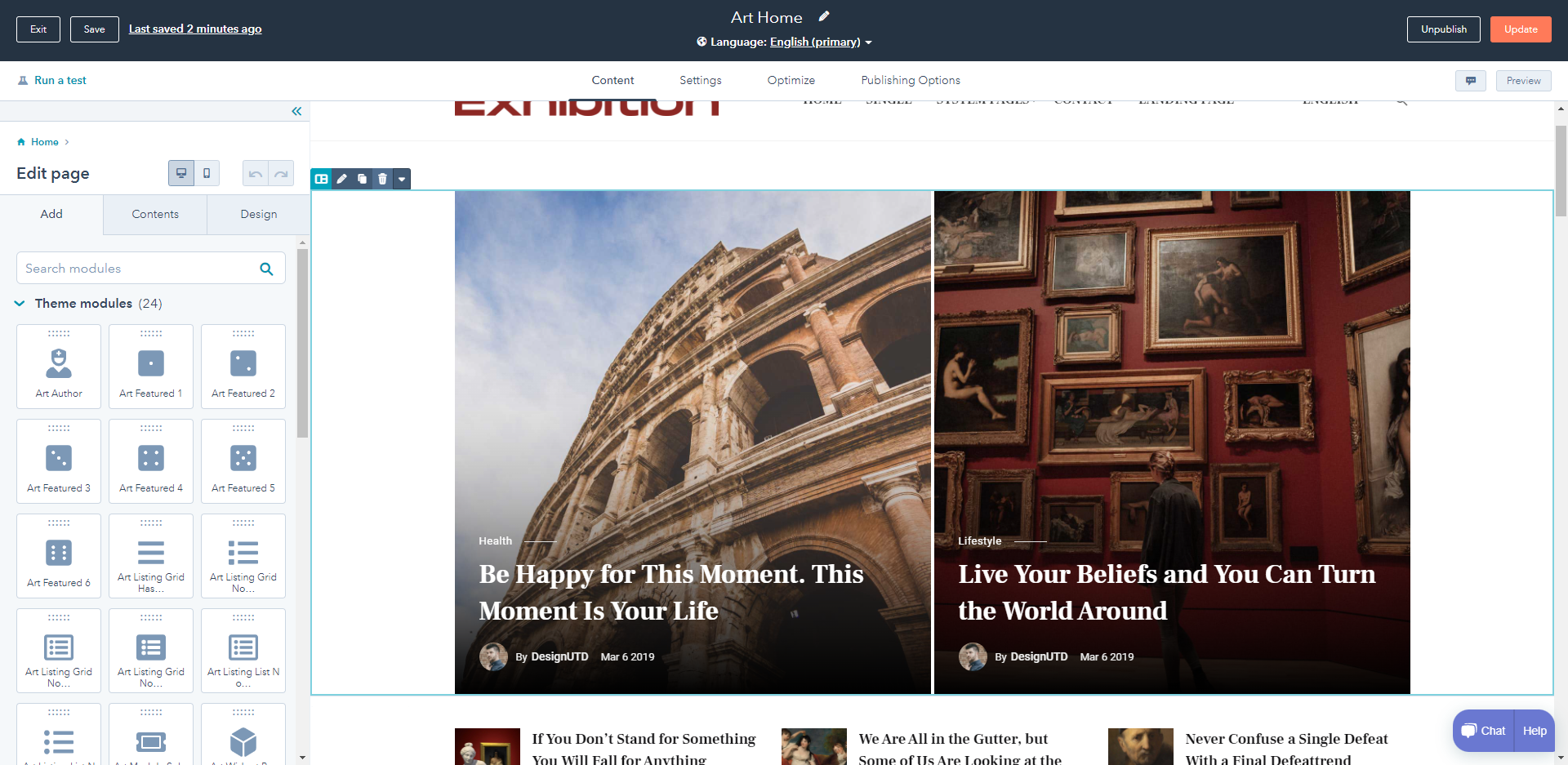 Note:* If your hubspot account has more than one home page and you want each home page to contain different content. Follow steps below.