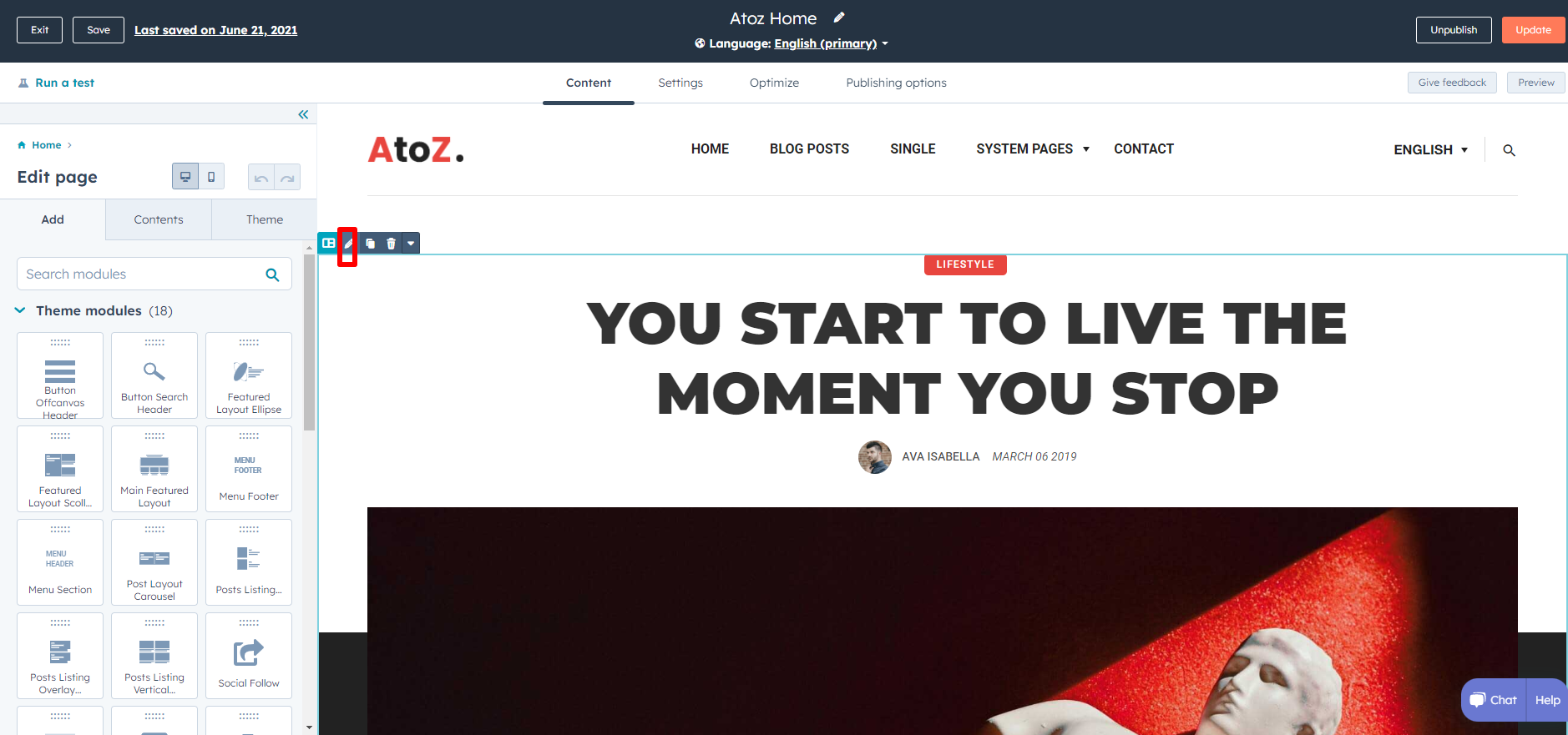 Note:* If your hubspot account has more than one home page and you want each home page to contain different content. Follow steps below.