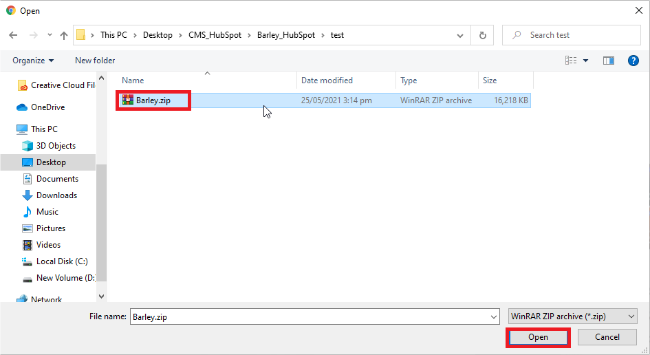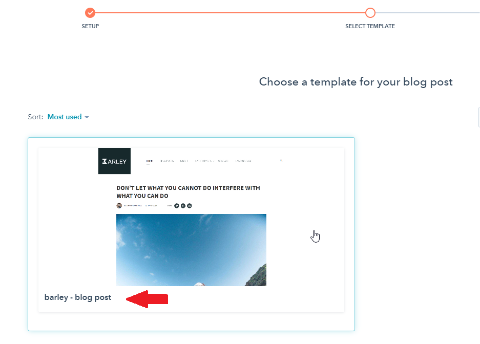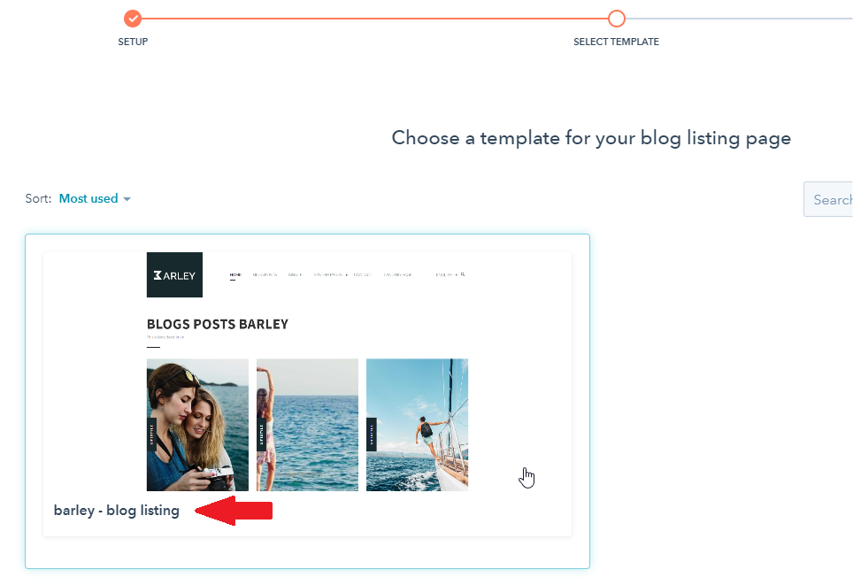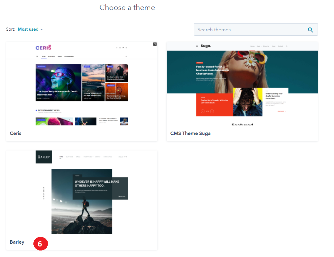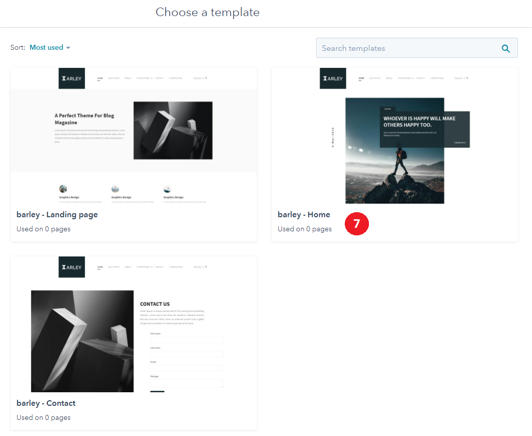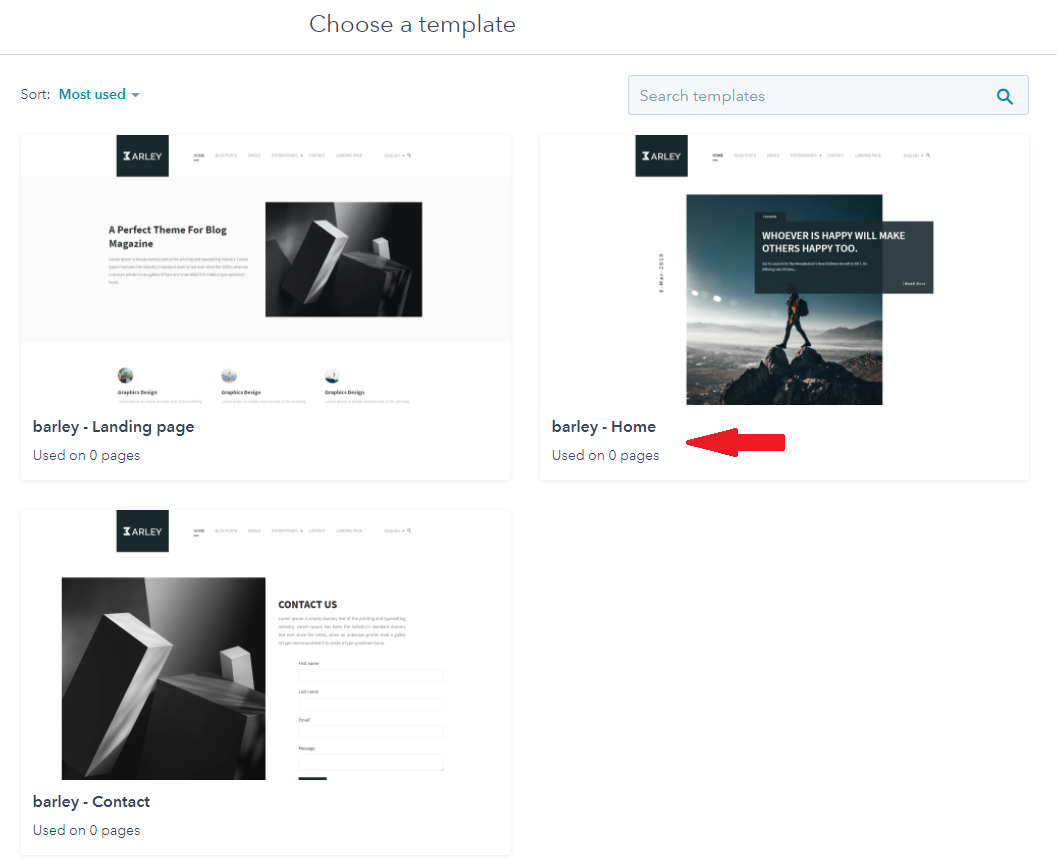 - Choose a template from your newly uploaded theme by selecting the CMS Theme barley.
