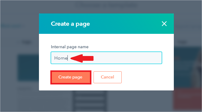 - After choose page Home. Enter the name of the internal page , click Create page.