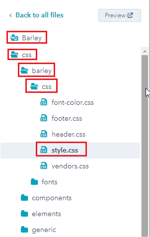 - In left sidebar, choose barley > css > barley > css > style.css .