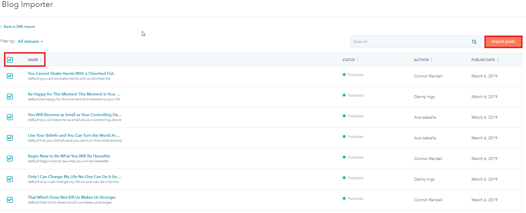 - Atfer import, in column Status display Upload and imported. You have finished import posts.