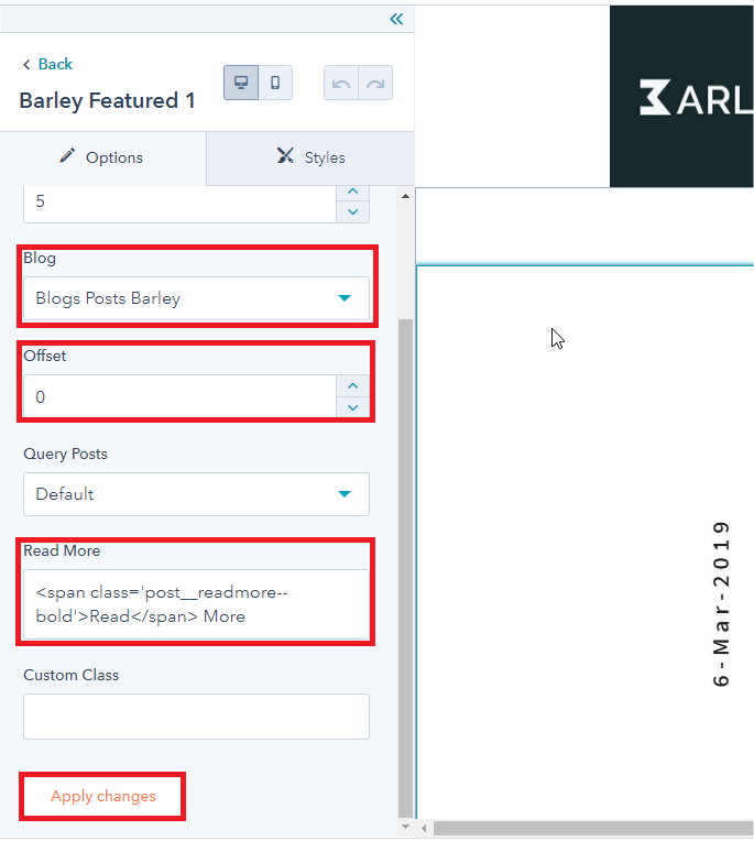 - Choose Module, in field Blog choose blog for module. Then in field Offset set offer for module. Click Aplly changes.