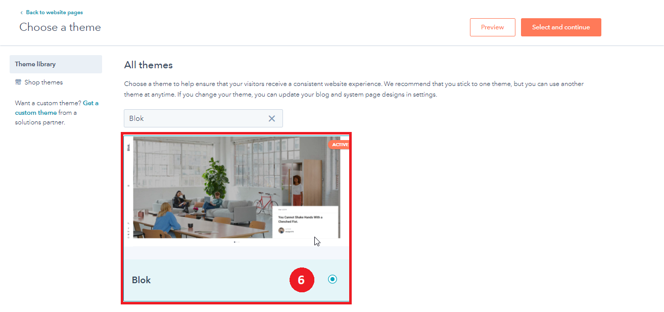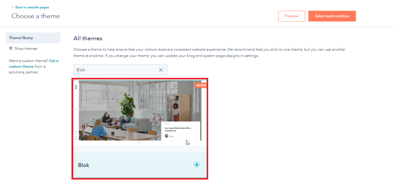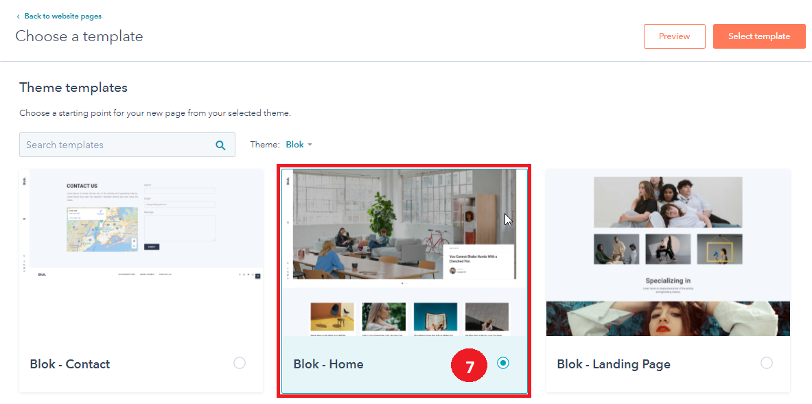 - Choose a template from your newly uploaded theme by selecting the CMS Theme Blok.