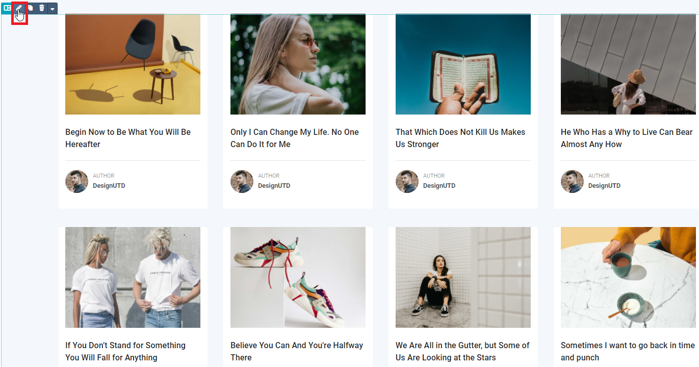 - To edit a module's contents, hover over the module and click the edit pencil icon.