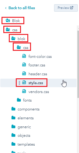 - In left sidebar, choose Blok > css > Blok > css > style.css .