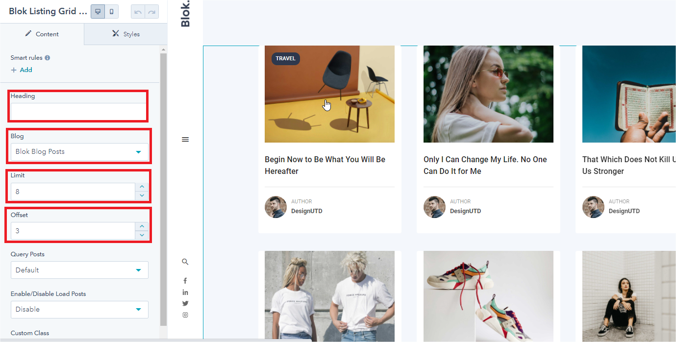 - Return to edit content page. Choose Blog then paste Author Slug in to field Author Slug