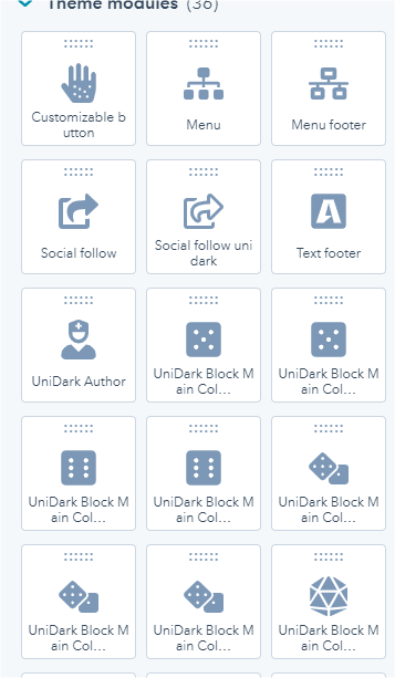 - After create page, drag and drop modules to contnet page.