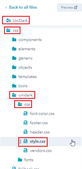 - In left sidebar, choose Carbon > css > carbon > css > style.css .