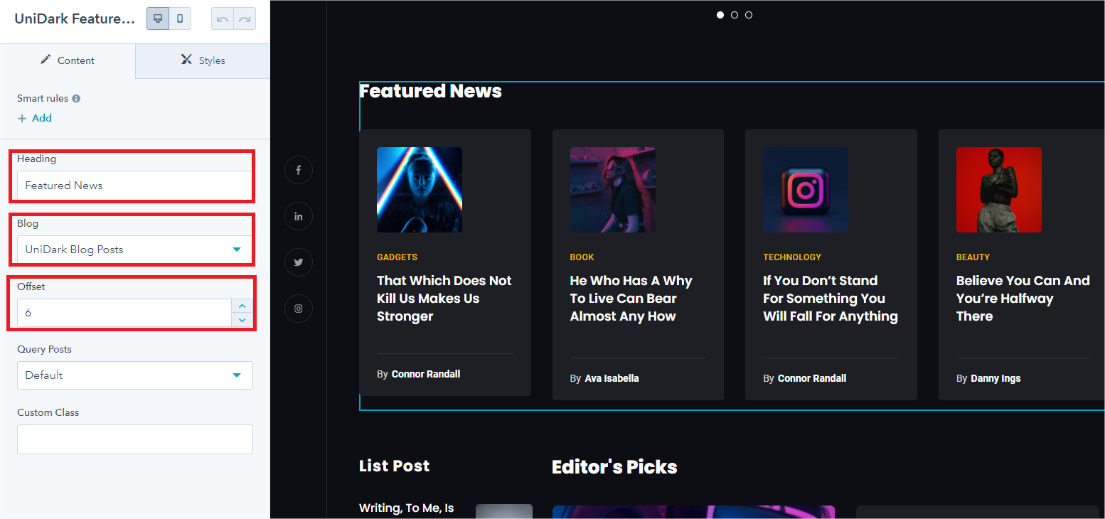 - Click a module to select it in the editor. In the left panel, click the Styles tab to access the styling options for that particular module