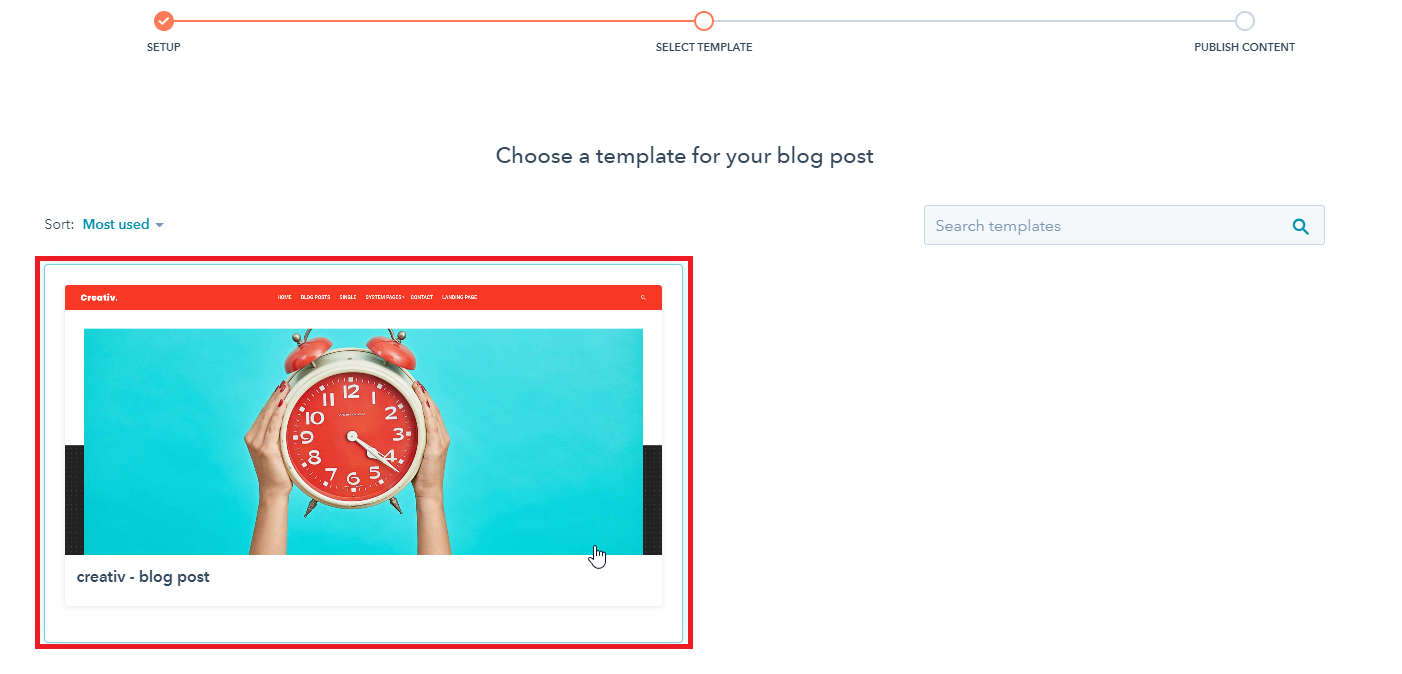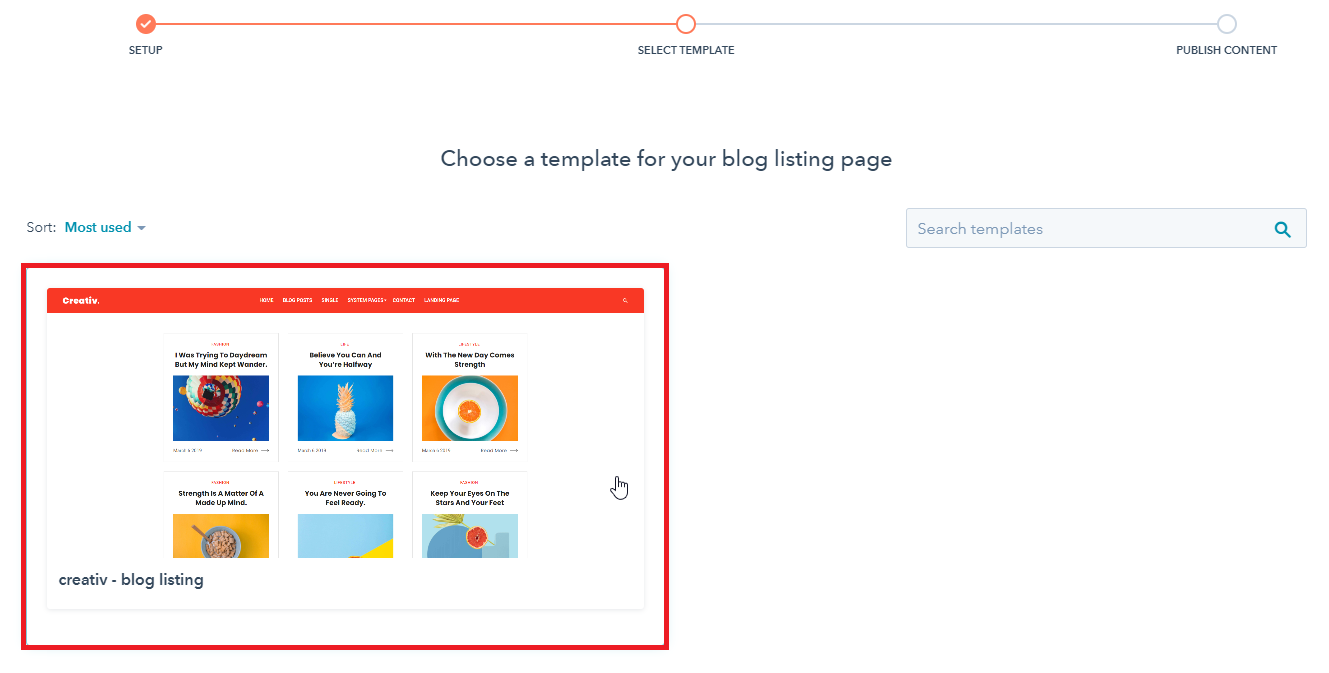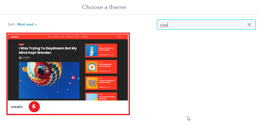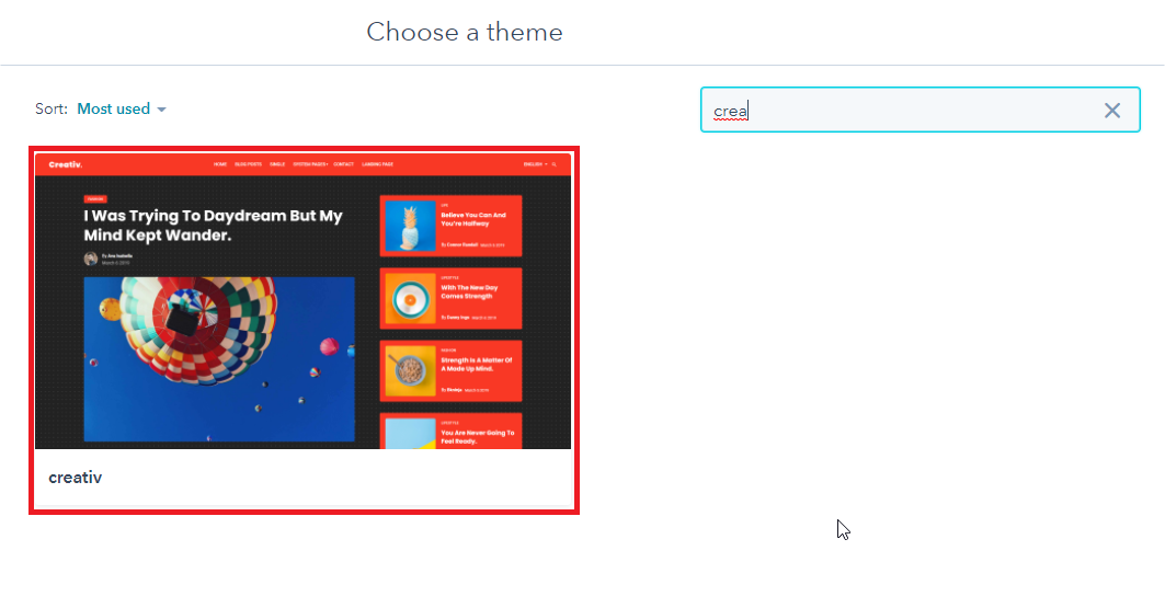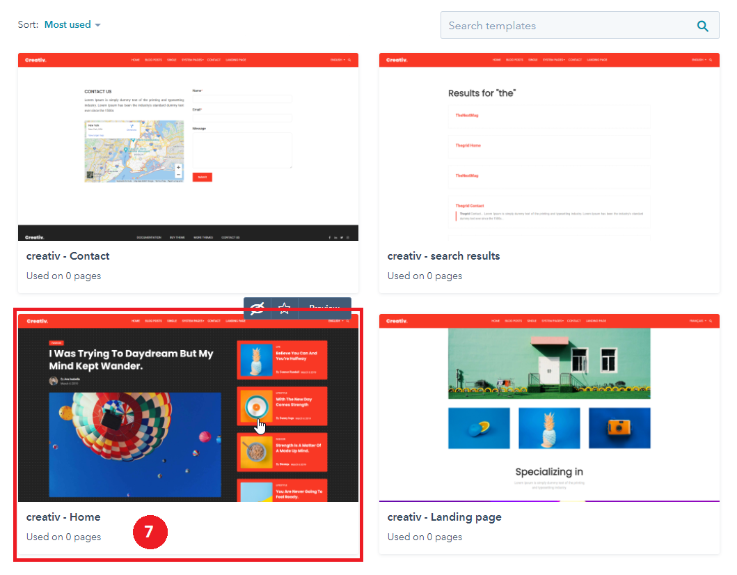 - Choose a template from your newly uploaded theme by selecting the CMS Theme creativ.
