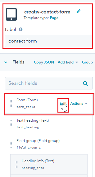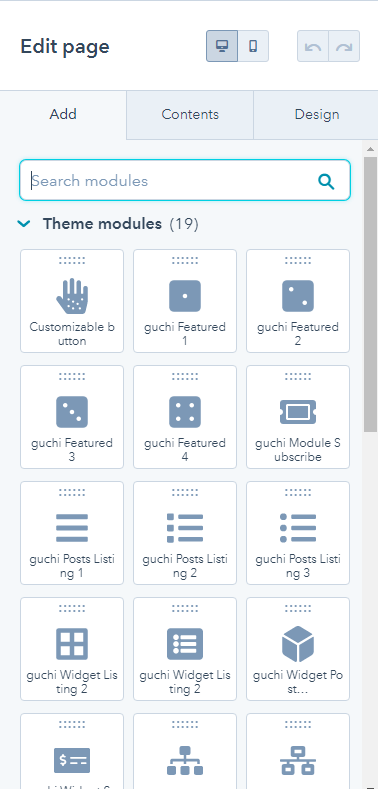 Note*: In the Contents tab on the left, you can view and edit all the modules in your page template. If your page contains global content, such as a page header, you'll edit this in your page within the global content editor.