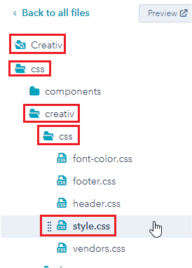 - In left sidebar, choose creativ > css > creativ > css > style.css .