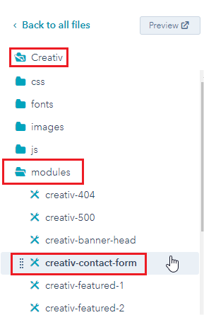 - Inside creativ folder choose Modules > creativ-contact-form.