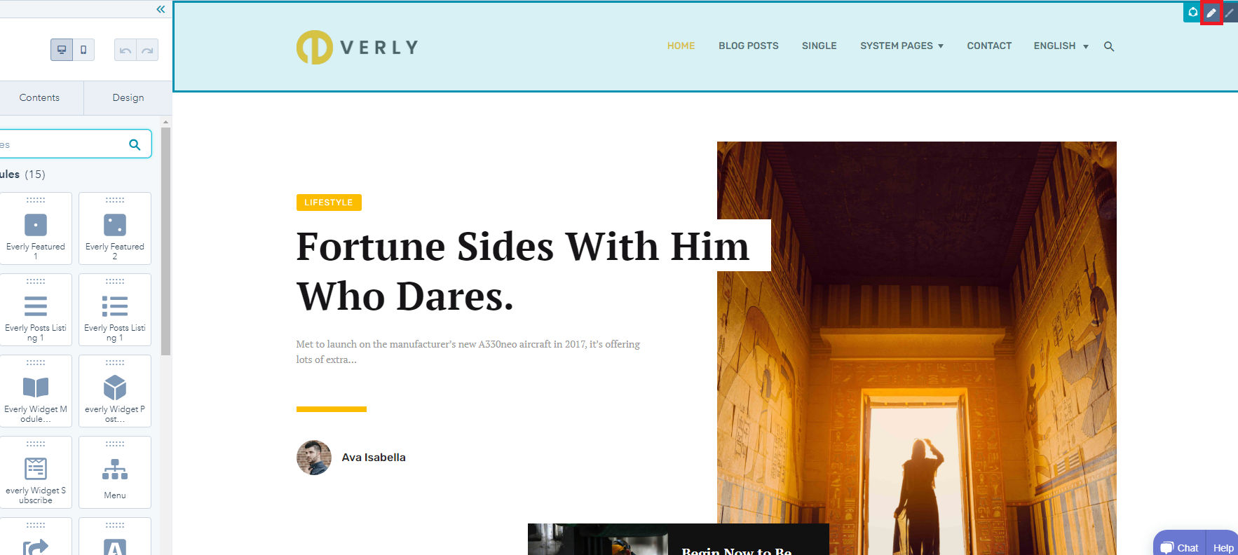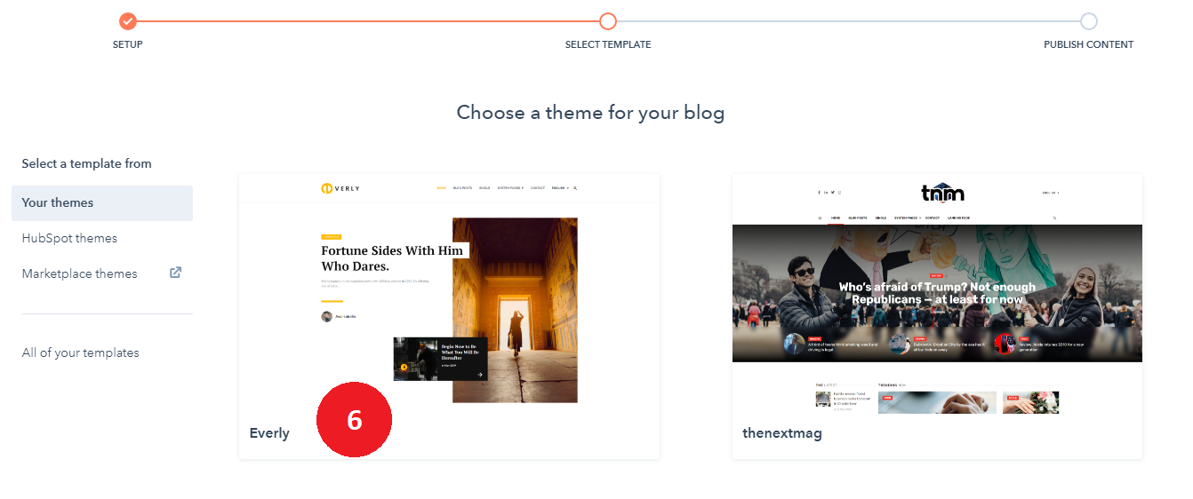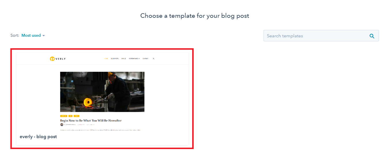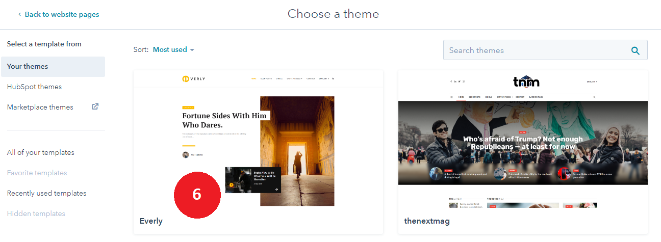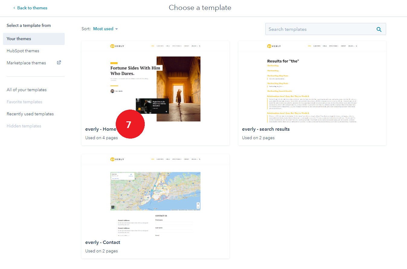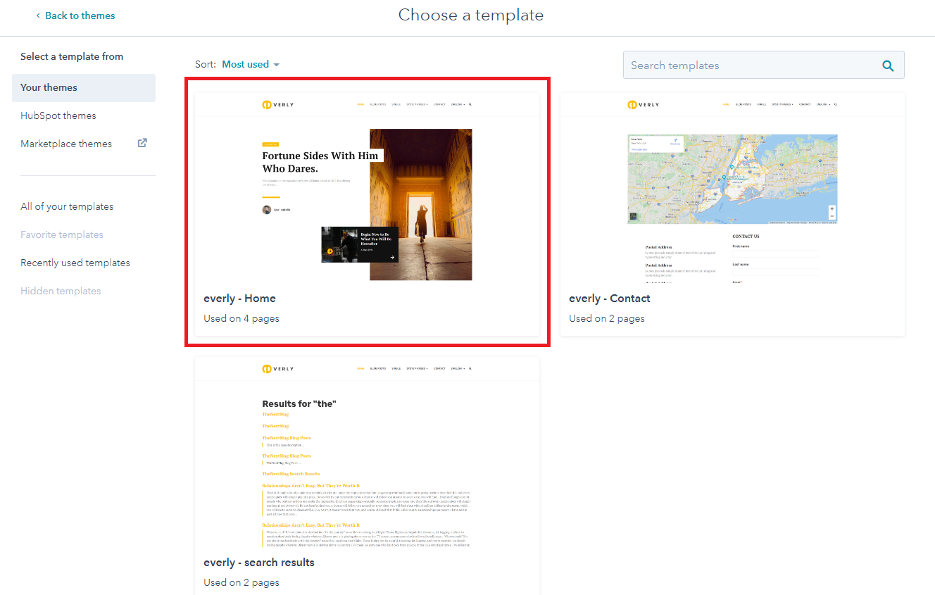 - Choose a template from your newly uploaded theme by selecting the CMS Theme Everly.