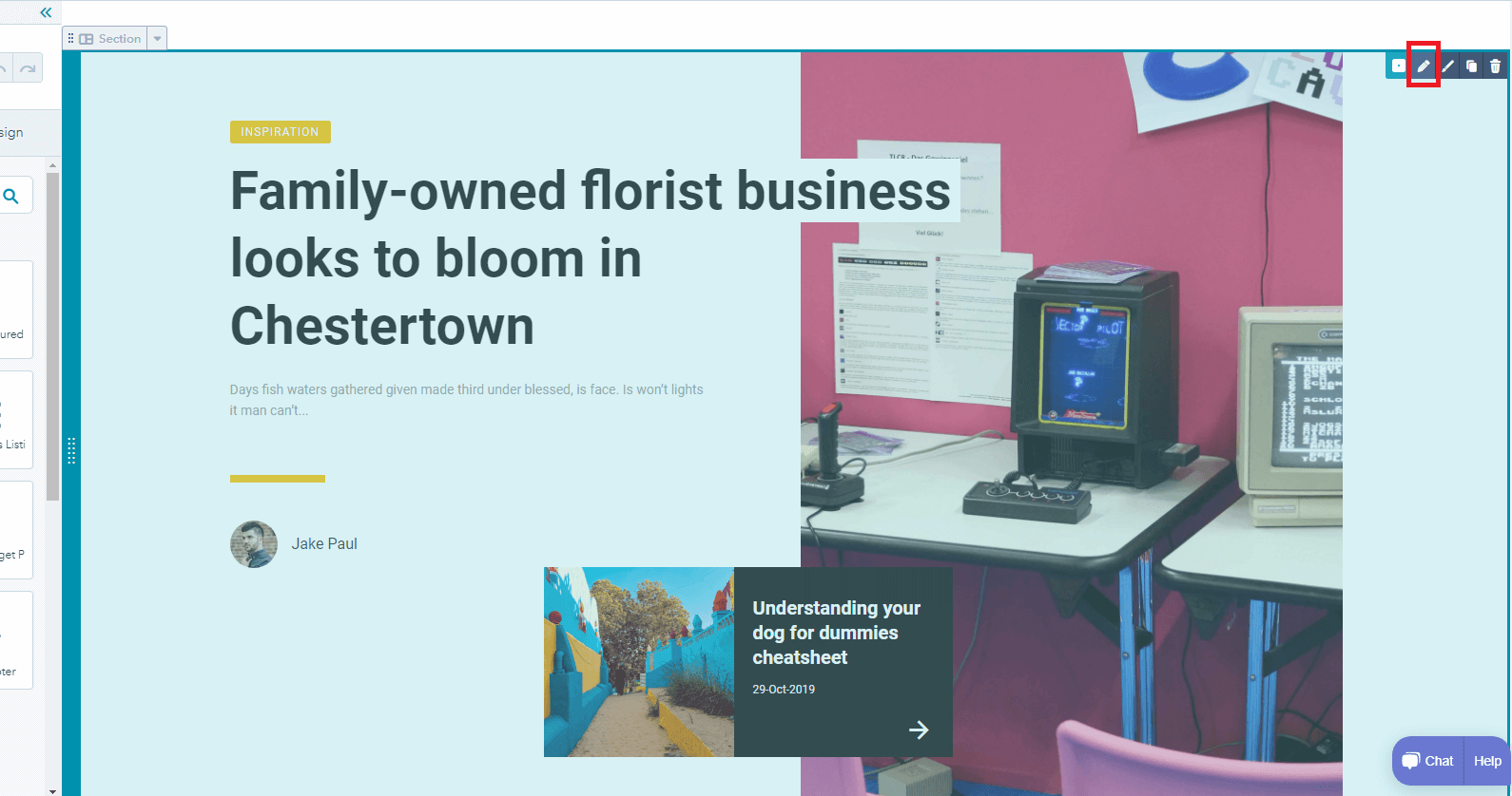 - Some module types, such as headings, can be edited inline directly on the page preview. Clicking a module will also open its editing options in the left panel.