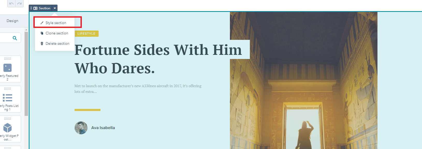 - After style for section click Update.