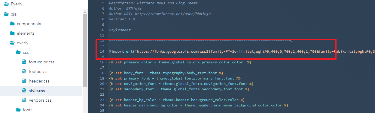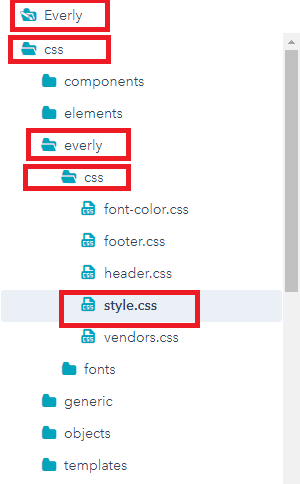- In left sidebar, choose Everly > css > Everly > css > style.css .