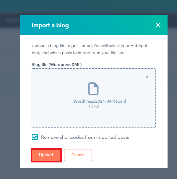 - Atfer click Upload. Access your email (registered email for CMS Hubspot account), click Import posts now.