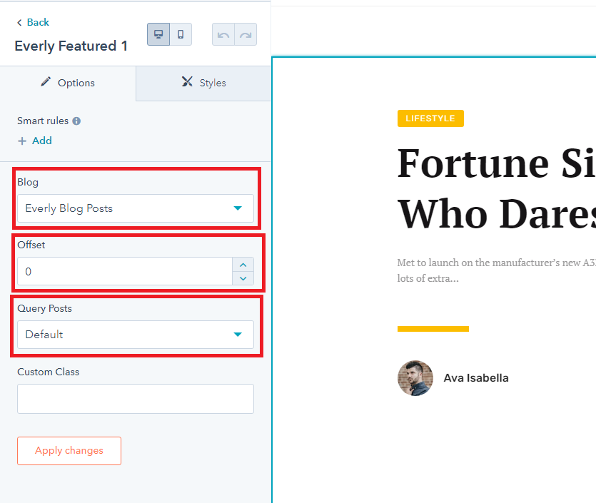 - Choose Module, in field Blog choose blog for module. Then in field Offset set offer for module. Click Apply changes.