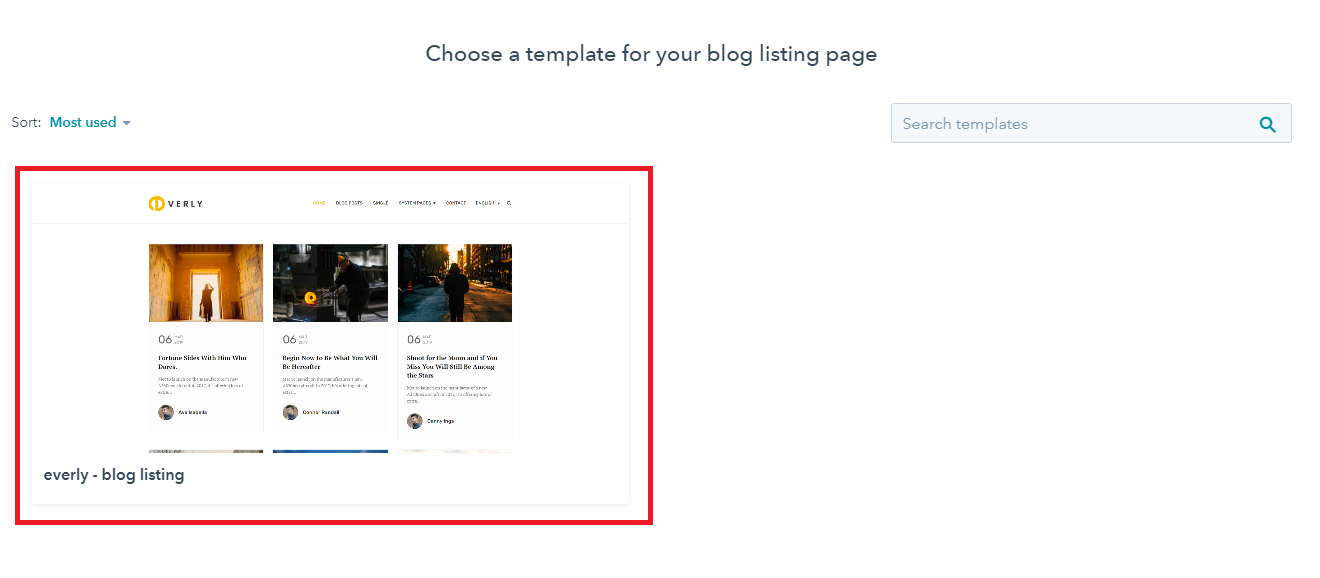 - Select a template for your blog posts, then select a template for your listing page.