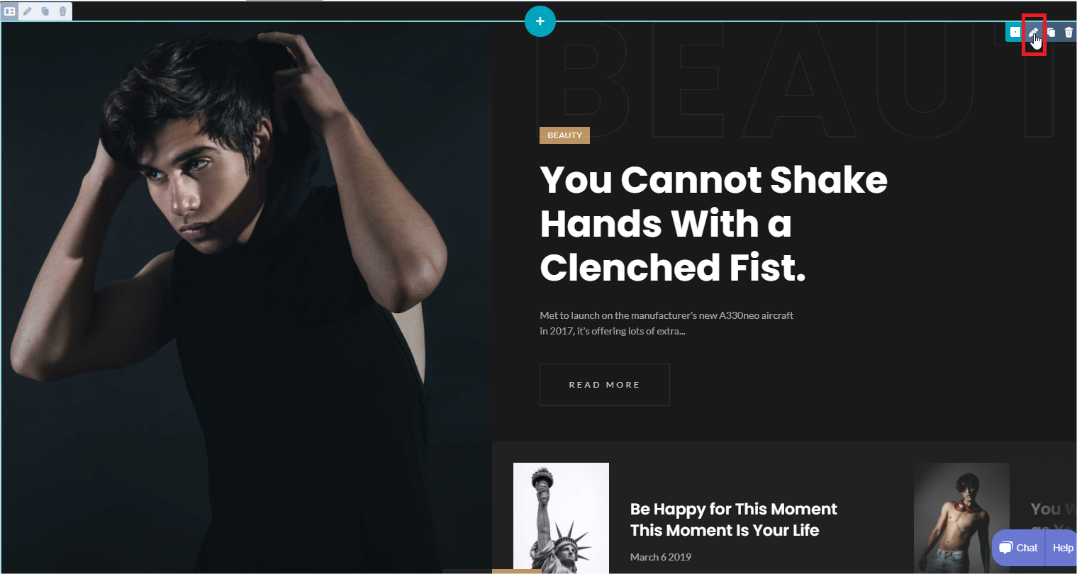 - After drag module move mouse to the section then click icon dropdown and choose Style section