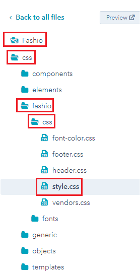 - In left sidebar, choose fashio > css > fashio > css > style.css .