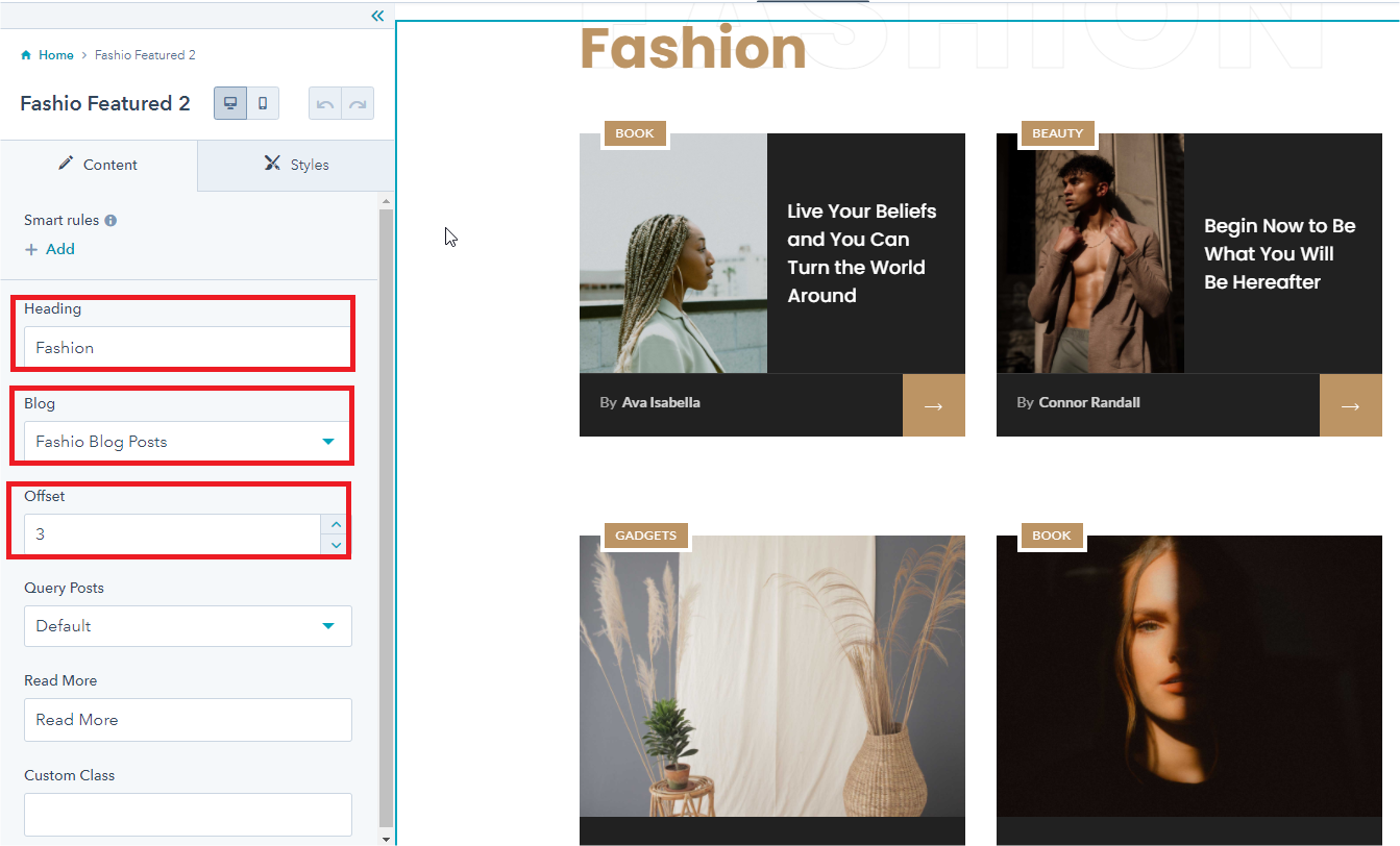 - Click a module to select it in the editor. In the left panel, click the Styles tab to access the styling options for that particular module