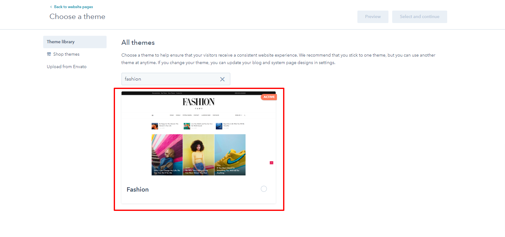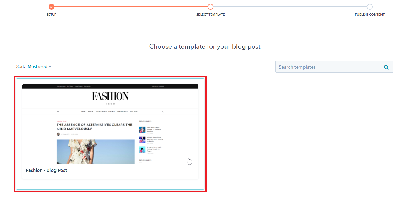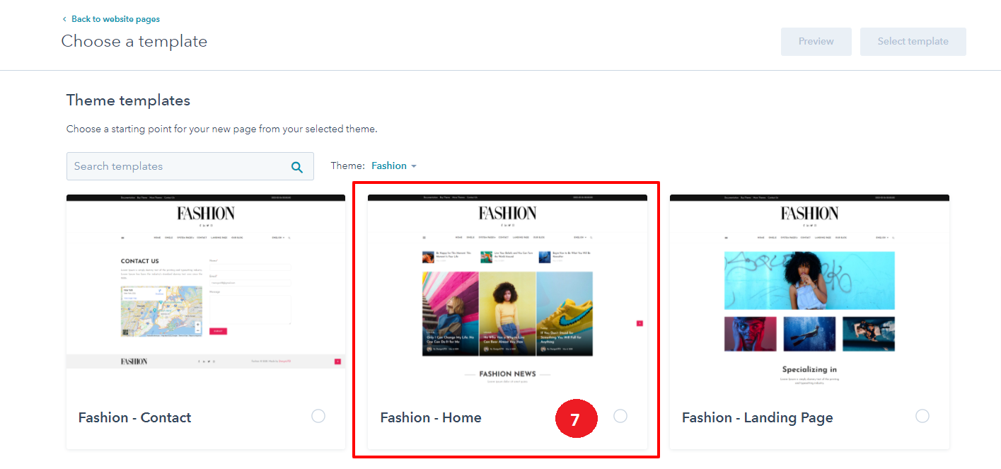 - Choose a template from your newly uploaded theme by selecting the CMS Theme Fashion.