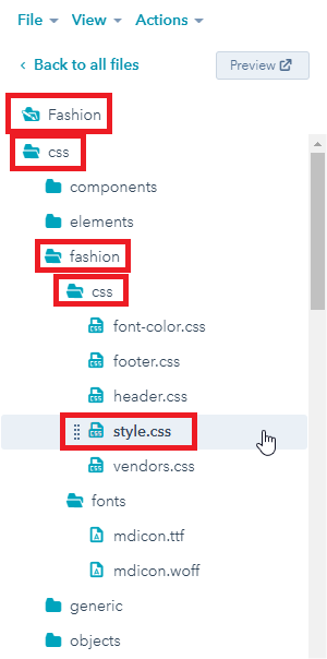 - In left sidebar, choose Fashion > css > Fashion > css > style.css .