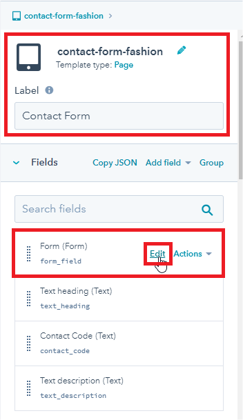 - In right sidebar find to Contact Code (Text) and click Edit