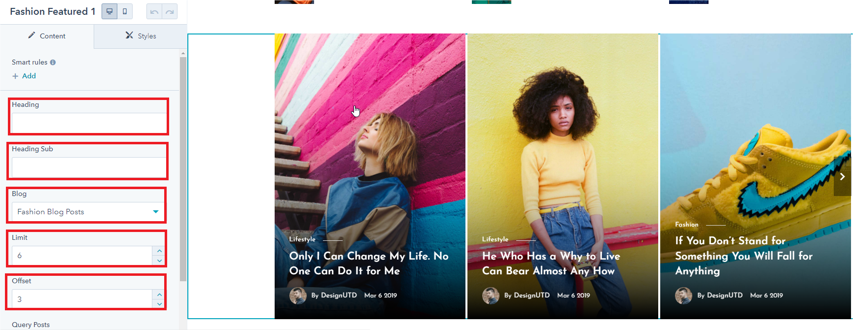 - Blog Listing > Enable Custom Drag and Drop Area.