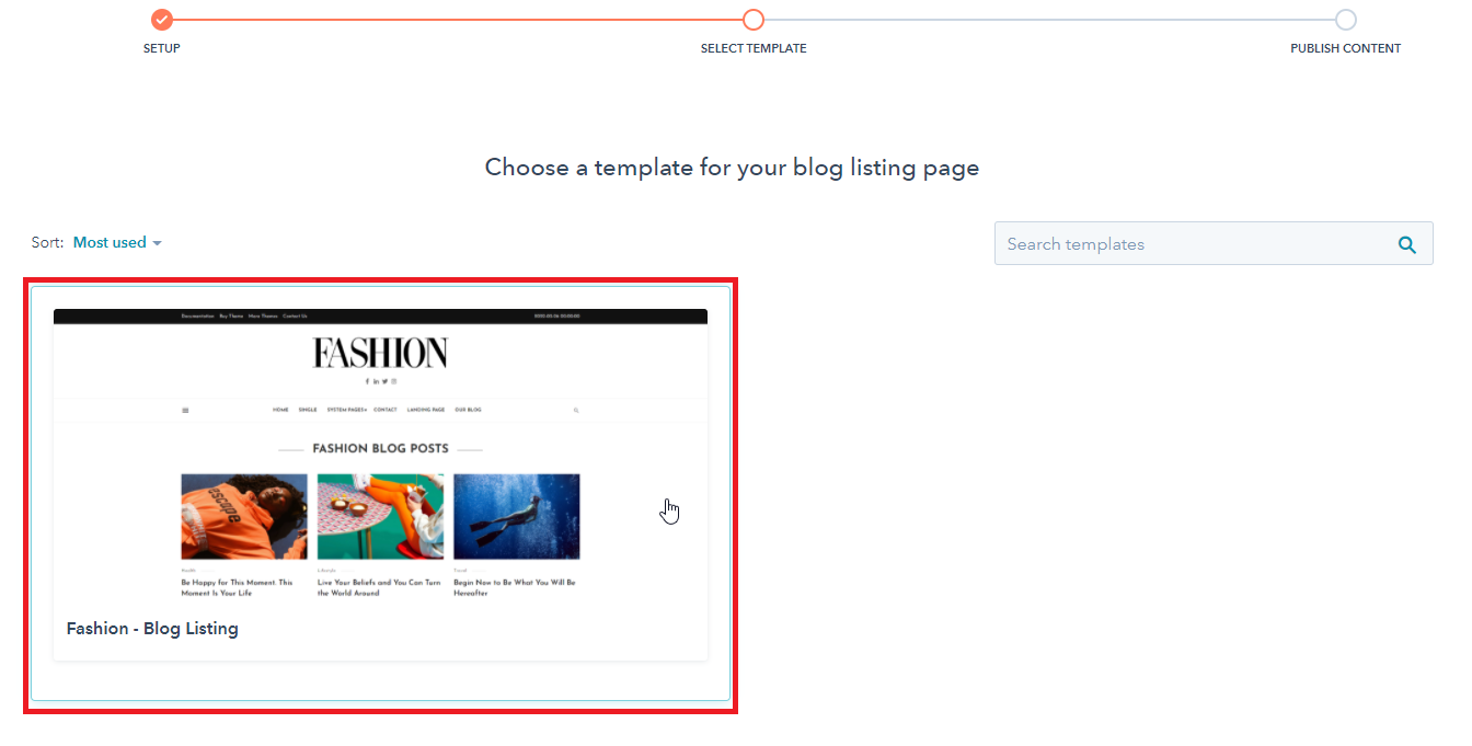- Select a template for your blog posts, then select a template for your listing page.