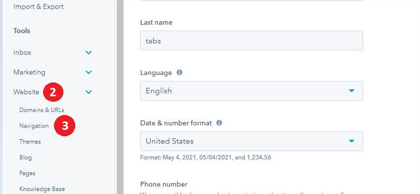 - In the left sidebar menu, navigate to Website > Navigation .