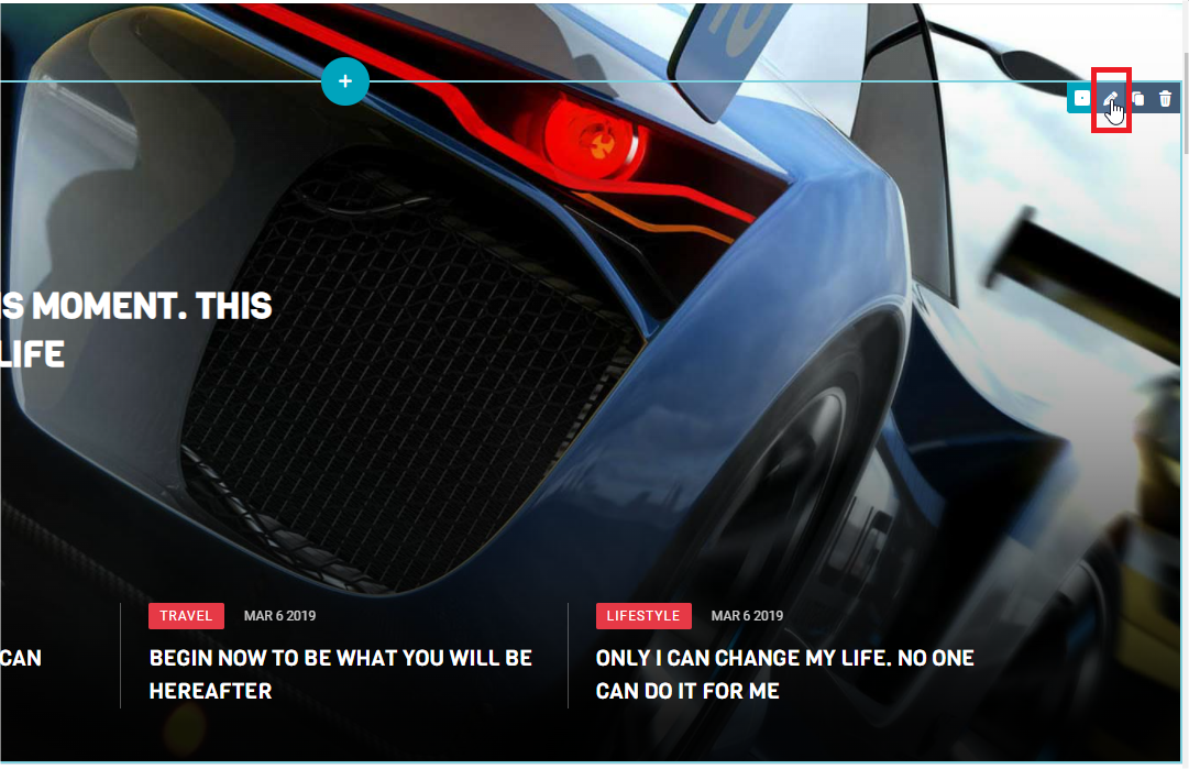 - After drag module move mouse to the section then click icon dropdown and choose Style section
