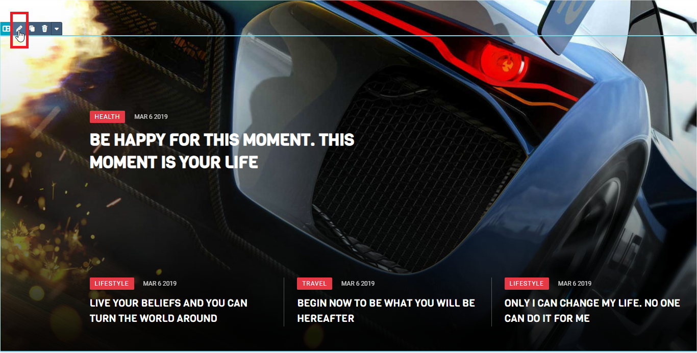 - To edit a module's contents, hover over the module and click the edit pencil icon.