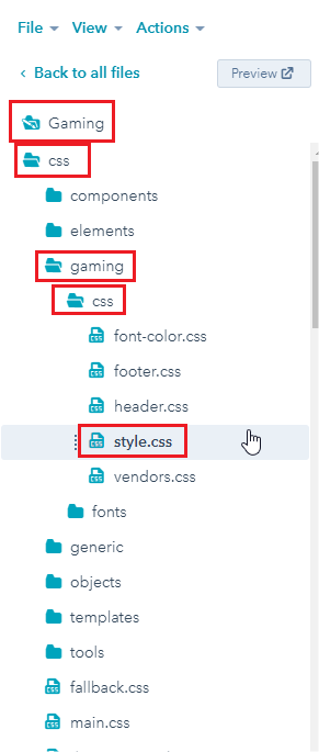 - In left sidebar, choose Gaming > css > Gaming > css > style.css .
