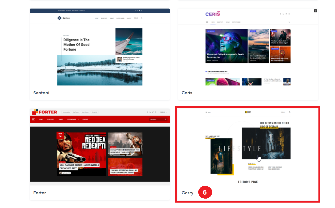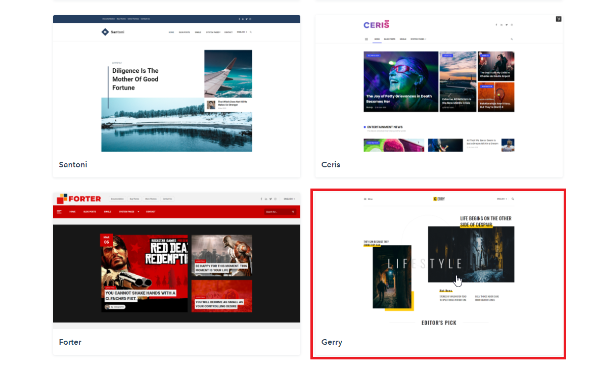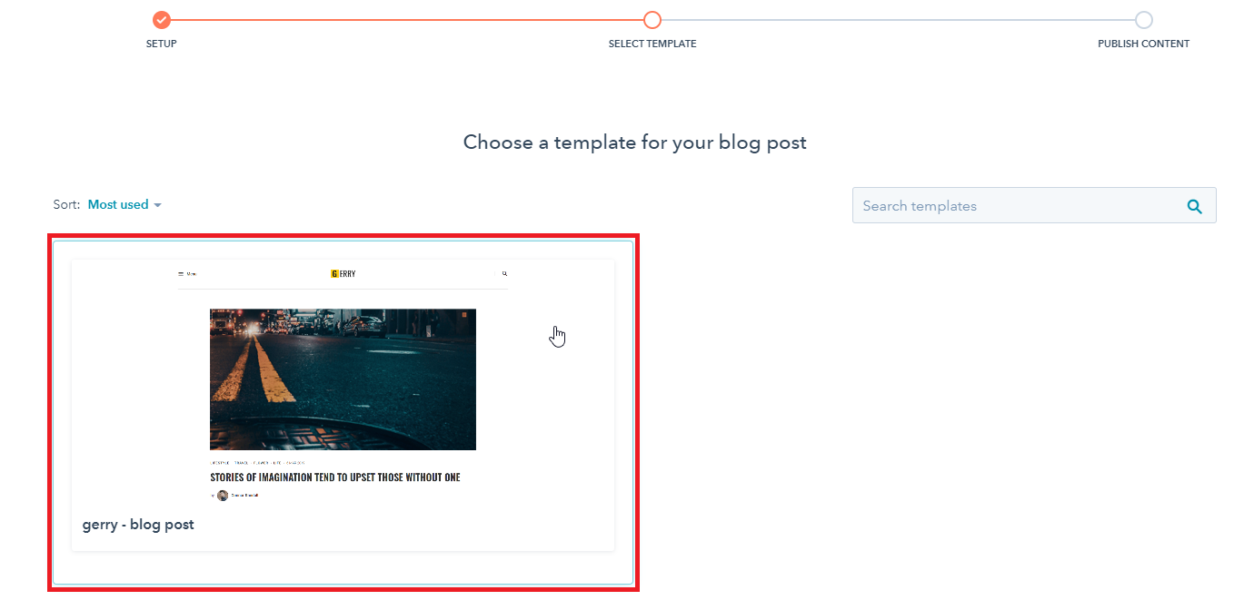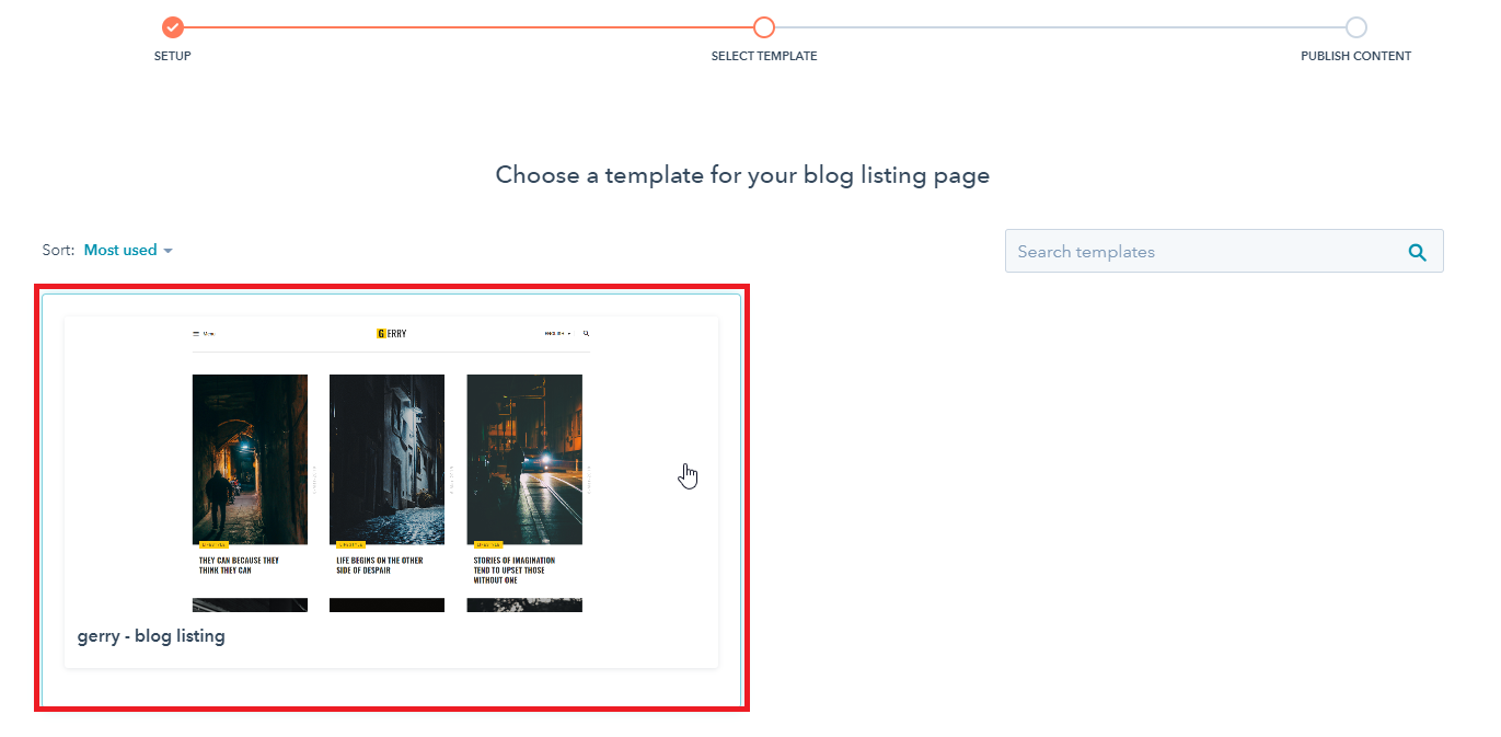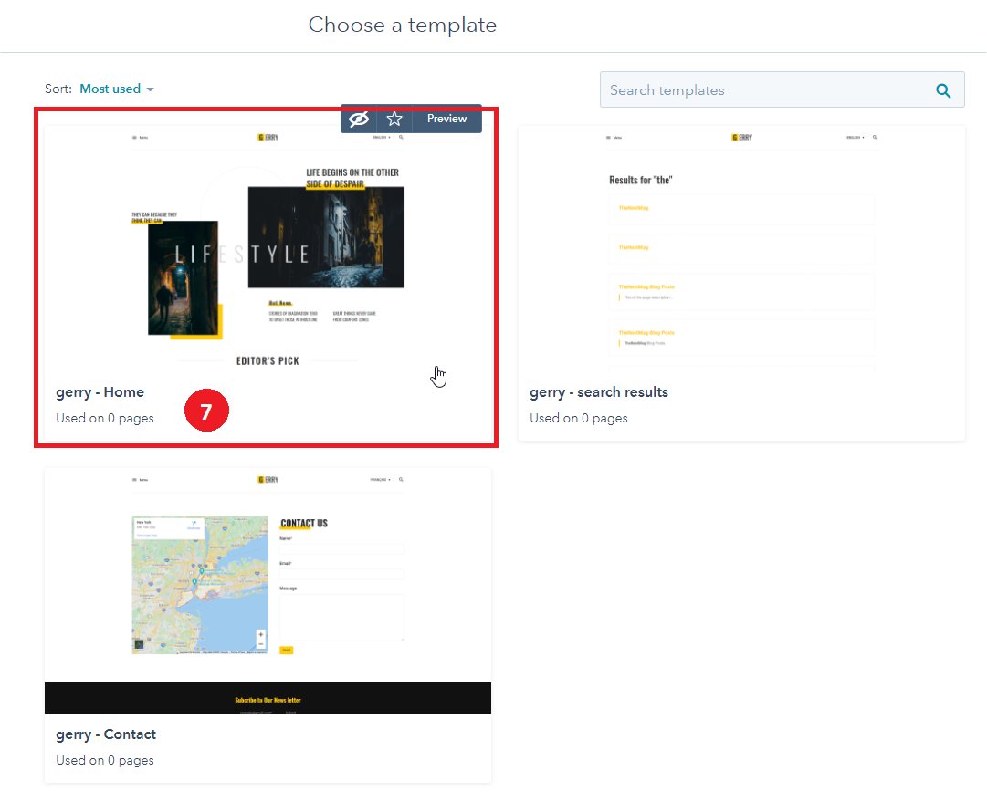 - Choose a template from your newly uploaded theme by selecting the CMS Theme gerry.