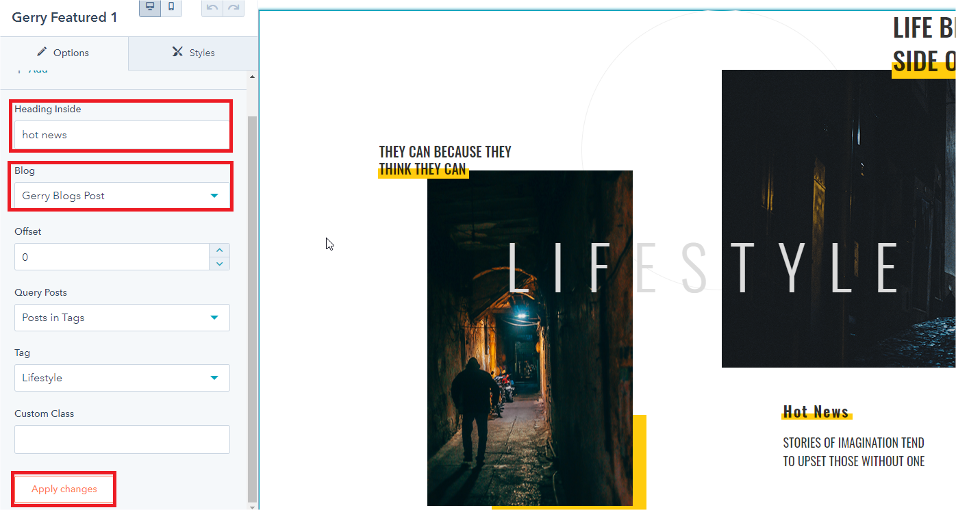 - Choose Module, in field Blog choose blog for module. Then in field Offset set offer for module. Click Apply changes.