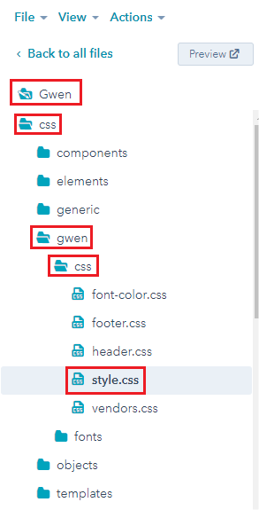 - In left sidebar, choose gwen > css > gwen > css > style.css .