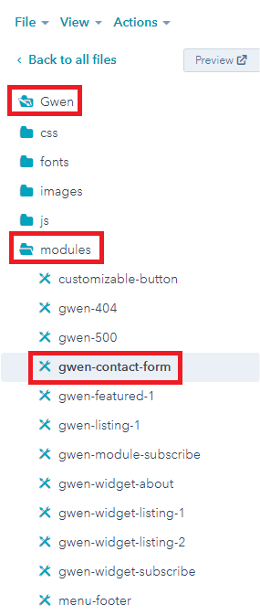 - Inside gwen folder choose Modules > gwen-contact-form.