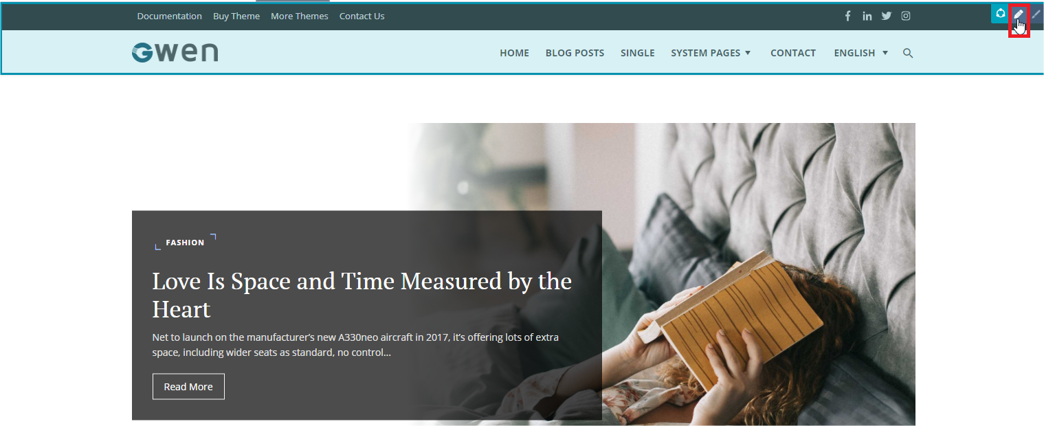- From editor home page move the mouse to the header and footer of the home page then left click mouse and choose Open in global content editor.