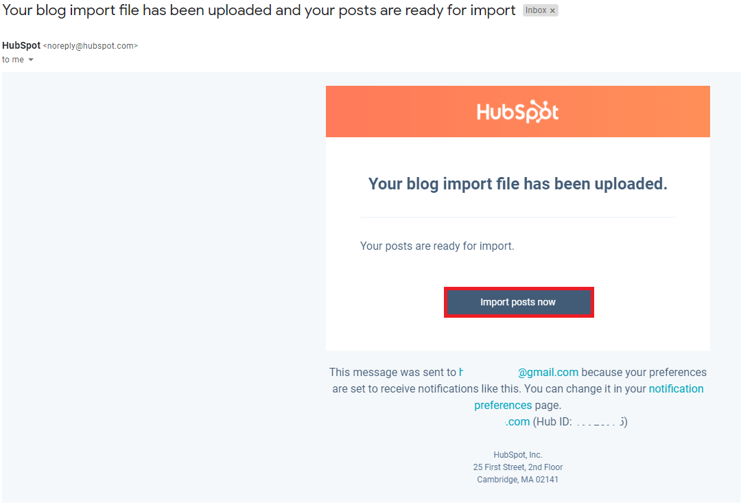 - Atfer click Upload. Access your email (registered email for CMS Hubspot account), click Import posts now.