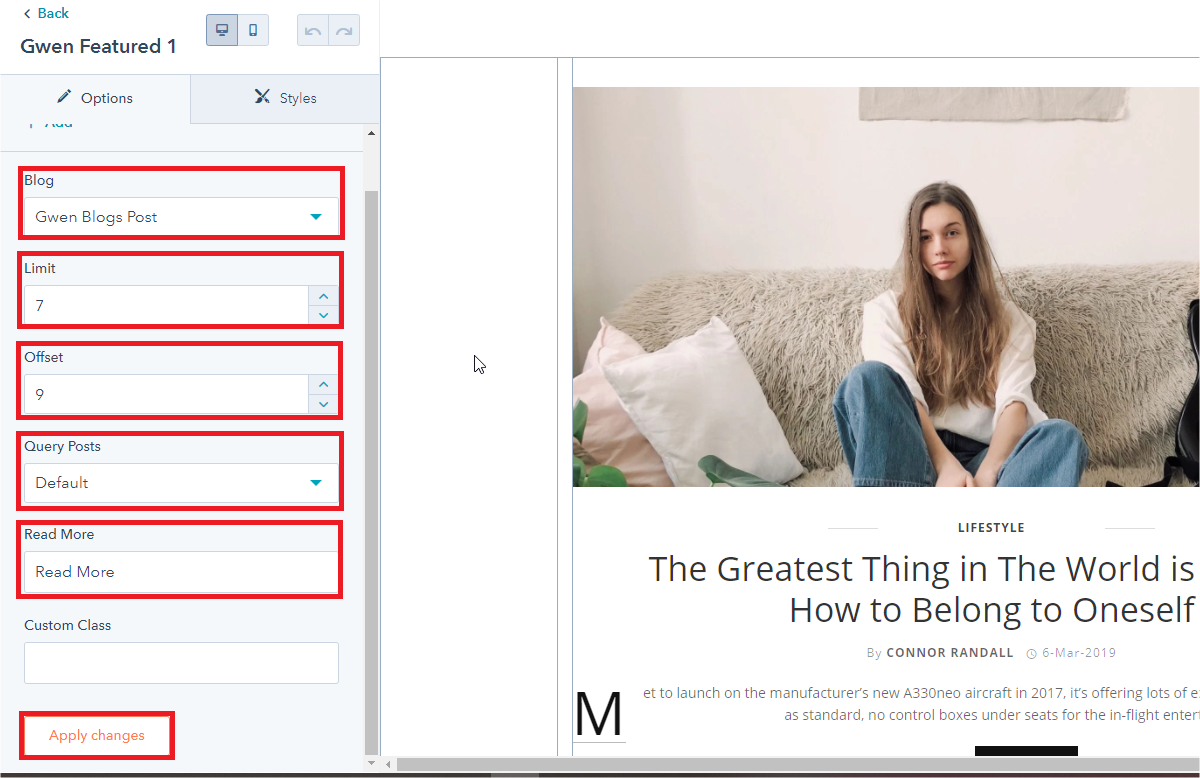 - Choose Module, in field Blog choose blog for module. Then in field Offset set offer for module. Click Apply changes.