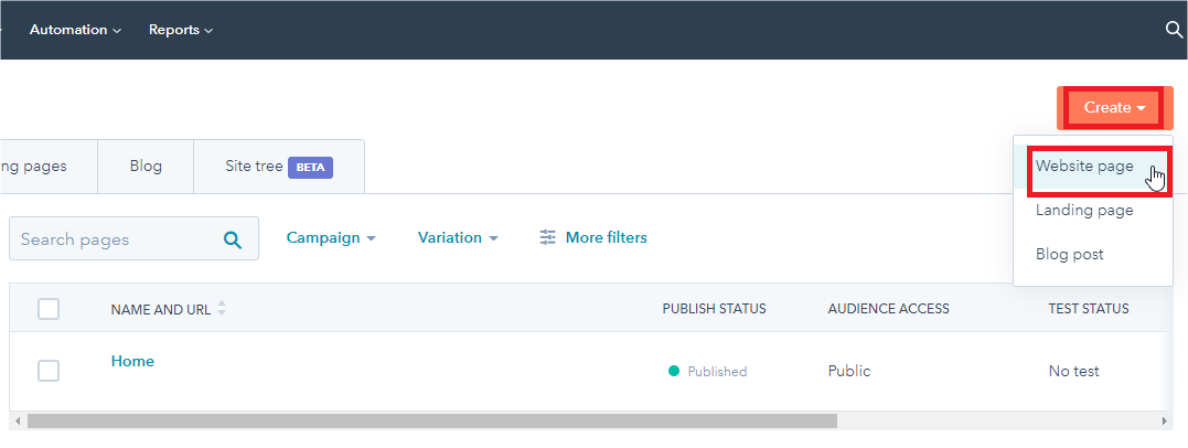 - In your HubSpot account, choose Marketing > Website > Website Pages.