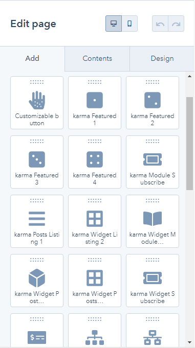 Add page link: adds a menu item that links to a specific HubSpot page.