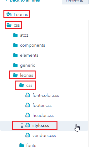 - In left sidebar, choose leonas > css > leonas > css > style.css .