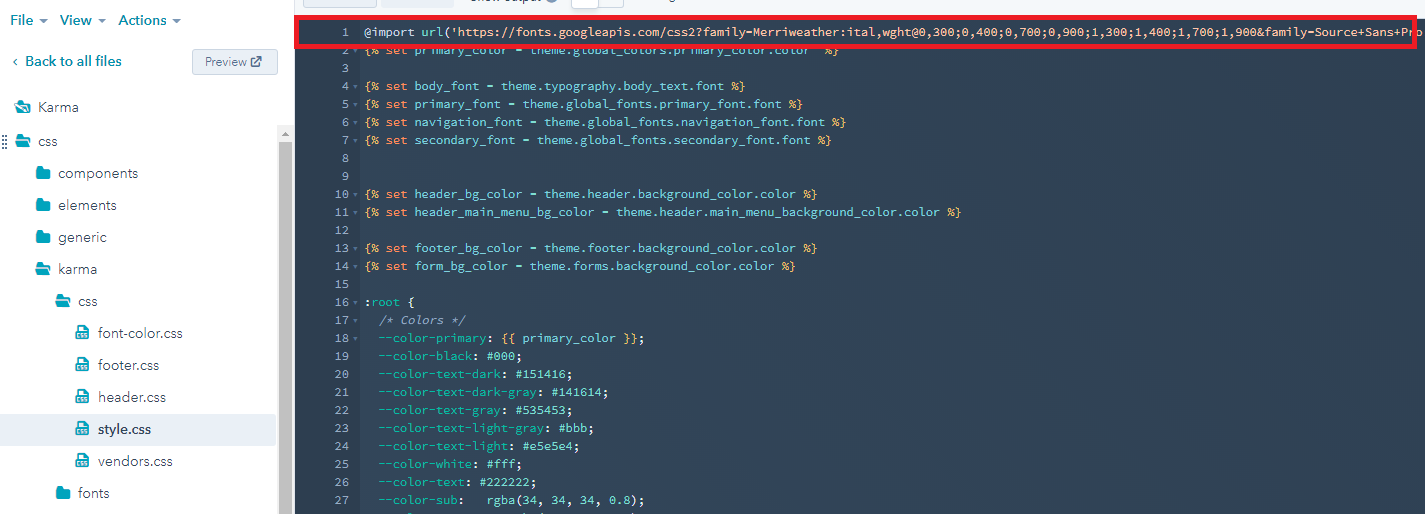 - Go to https://fonts.google.com/ choose a font for your theme.