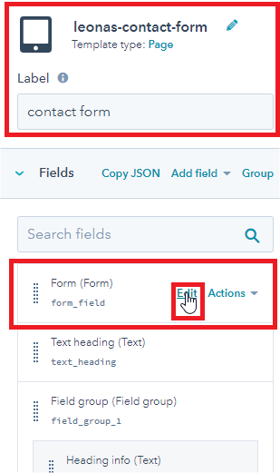 Note*: In the Contents tab on the left, you can view and edit all the modules in your page template. If your page contains global content, such as a page header, you'll edit this in your page within the global content editor.